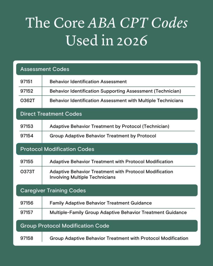 This guide walks through the core ABA CPT codes used in 2026, explains what each represents, and outlines the billing considerations providers are navigating this year.